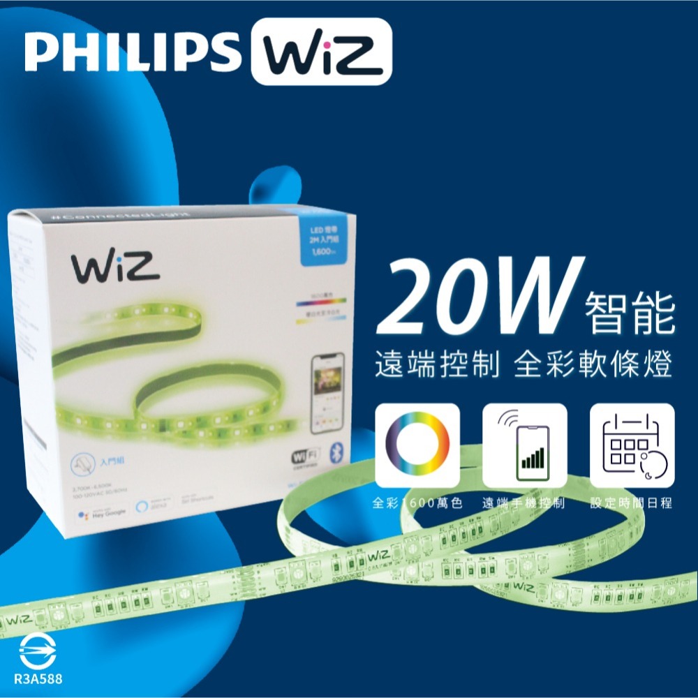 【純粹生活】Philips 飛利浦 LED WiZ 20W 2米 110V APP手機控制 智慧照明 燈帶 軟條燈