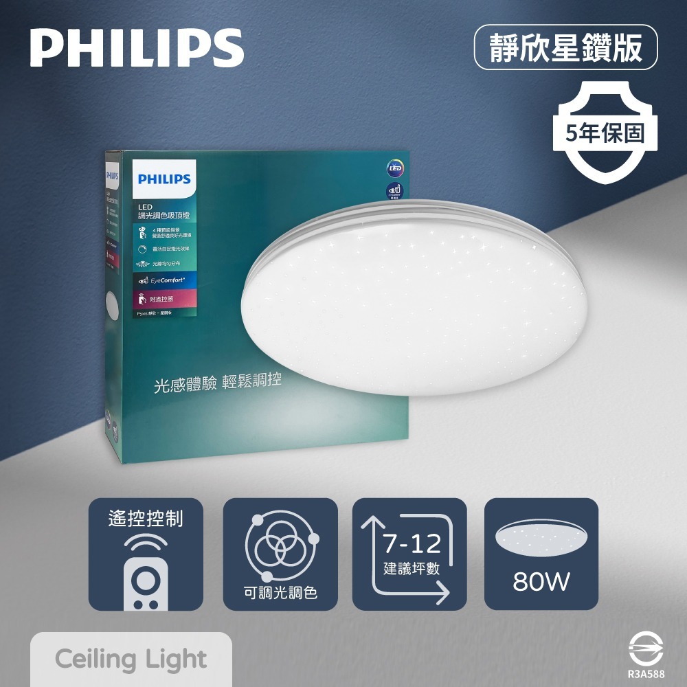 【純粹生活】Philips 飛利浦 LED Pyxis 靜欣 80W 全電壓 舒適光 調光調色 星鑽 吸頂燈