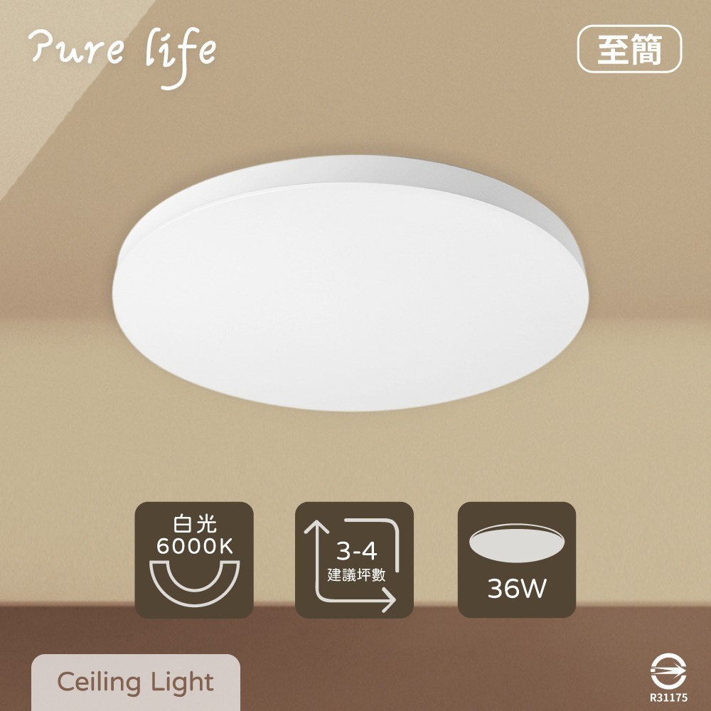 【純粹生活】LED至簡系列 36W 白光 全電壓 單色 無框純白 LED 吸頂燈