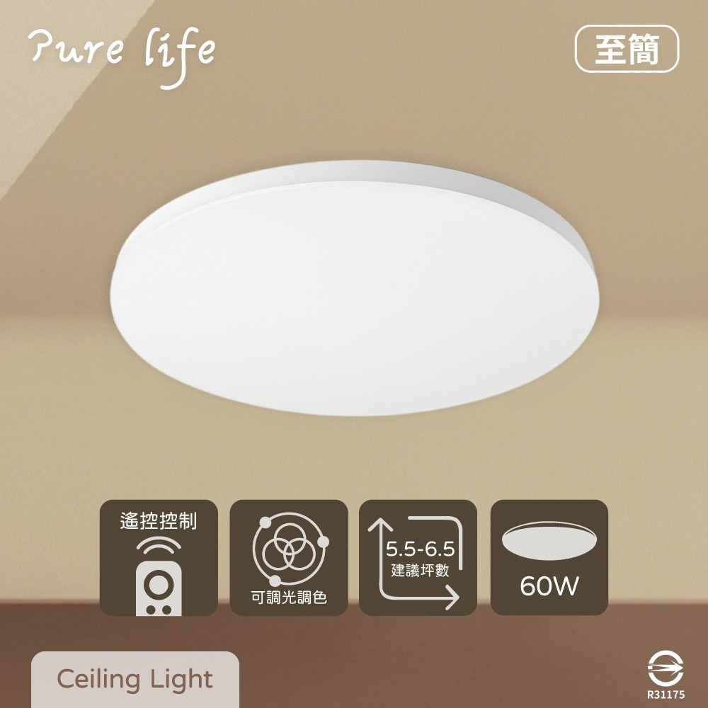 【純粹生活】LED至簡系列 60W 調光調色 全電壓 搖控調光 無框純白 LED 吸頂燈