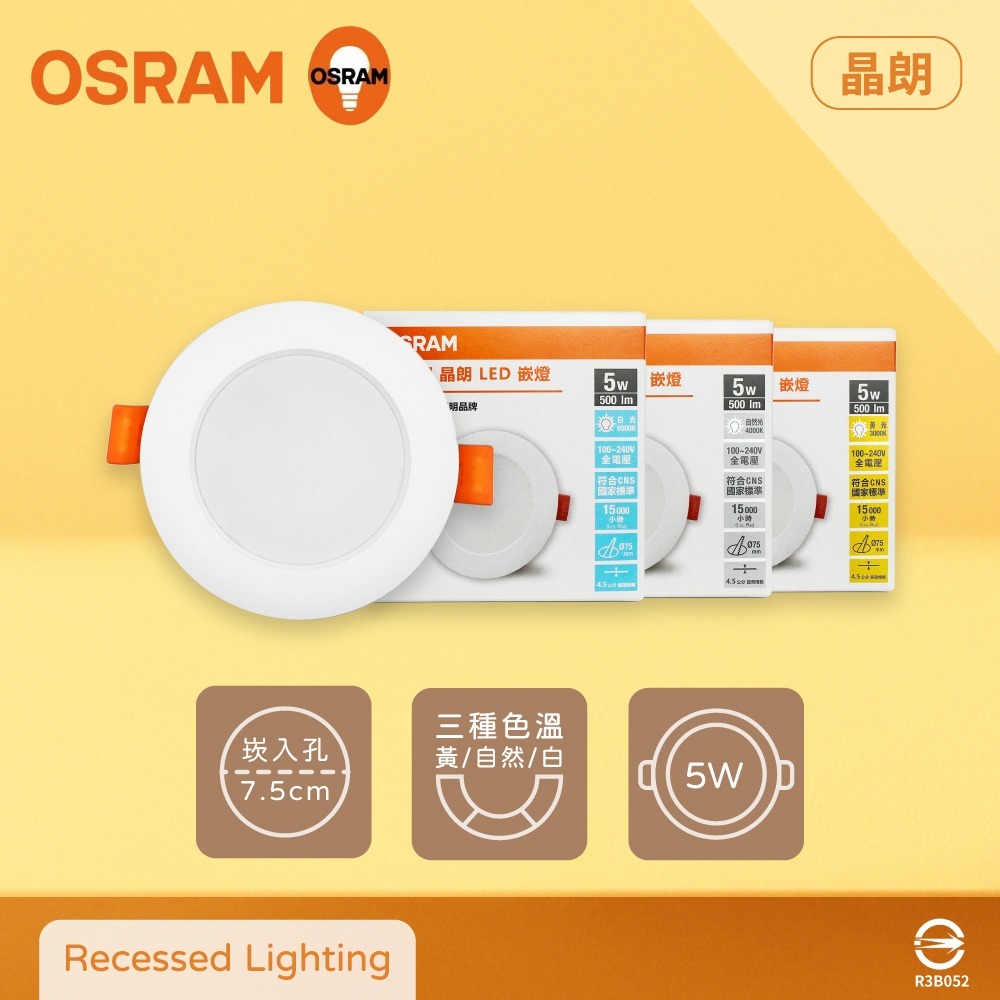 【純粹生活】 歐司朗 OSRAM 晶朗 LED 嵌燈 5W 全電壓 7.5cm 崁燈