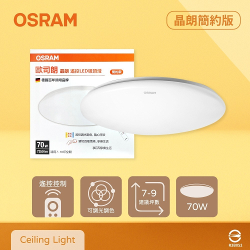 【純粹生活】 歐司朗 OSRAM 晶朗 LED 簡約版 70W 調光調色 遙控 LED吸頂燈