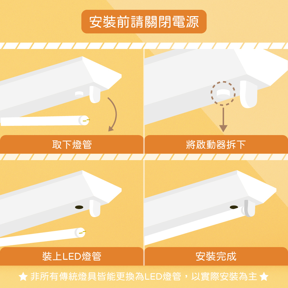 - 所有燈泡規格尺寸皆圖片表示。