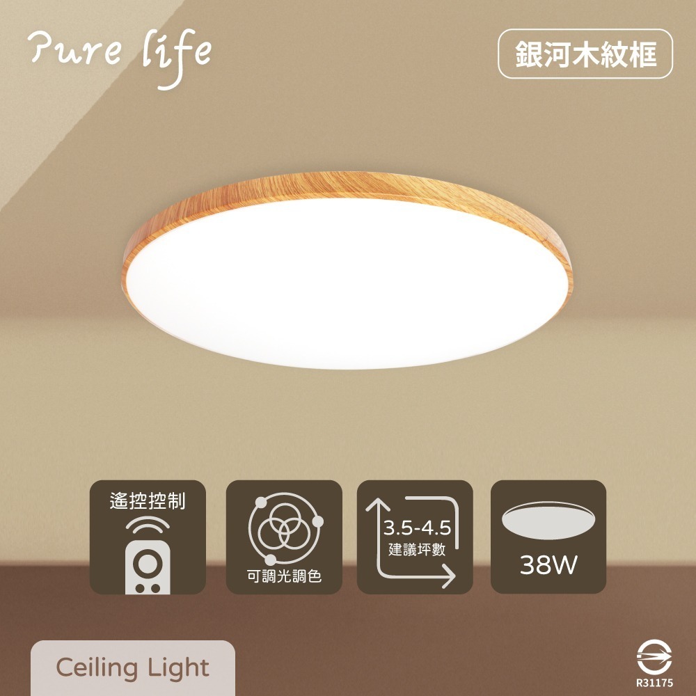 【純粹生活】無極調光調色 38W 銀河 木紋框 全電壓 遙控 LED吸頂燈 附遙控器