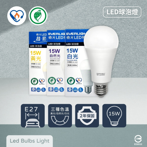 【億光 EVERLIGHT】LED燈泡 15W 全電壓 E27 環保標章 節能標章 球泡燈