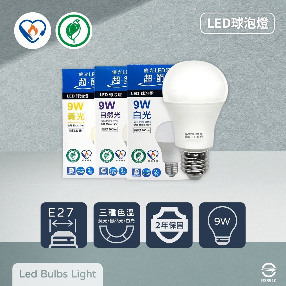 【億光 EVERLIGHT】LED燈泡 9W 全電壓 E27 環保標章 節能標章 球泡燈