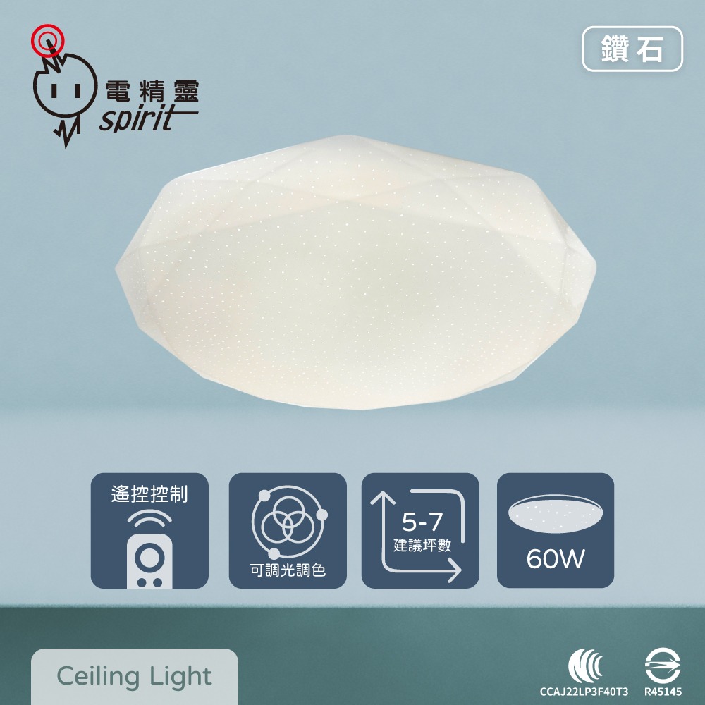 【純粹生活】 電精靈 spirit LED 60W 鑽石星鑽 全電壓 調光調色 遙控 吸頂燈