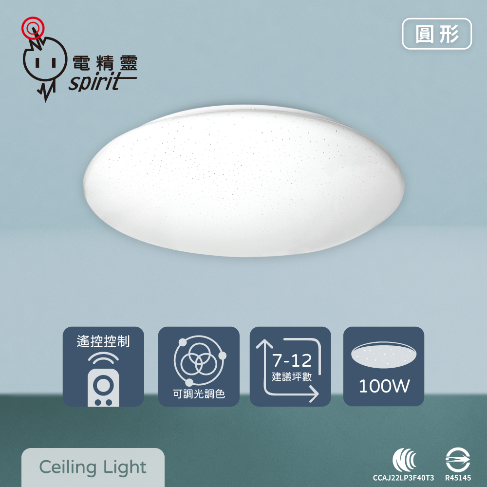 【純粹生活】 電精靈 spirit LED 100W 圓形星鑽 全電壓 調光調色 遙控 吸頂燈