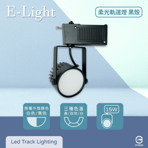 【純粹生活】 E極亮 LED 15W 全電壓 柔光 黑殼 軌道燈 投射燈