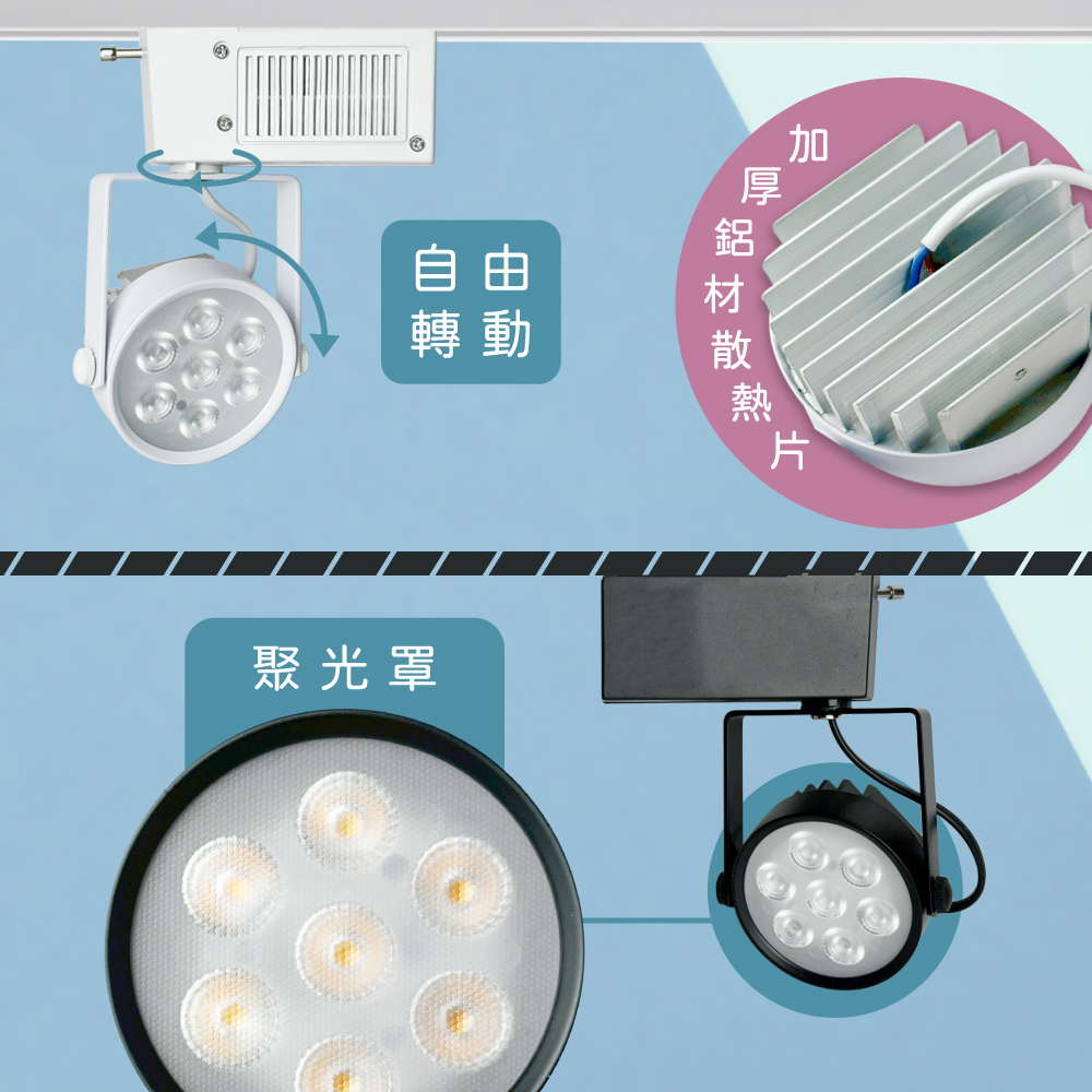 【純粹生活】 E極亮 LED 7W 全電壓 聚光 黑殼 軌道燈 投射燈