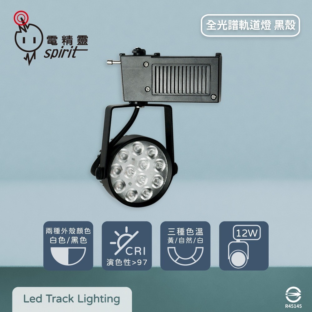 【純粹生活】 電精靈 spirit LED 12W 12珠 全電壓 全光譜 高演色 黑殼 LED軌道燈