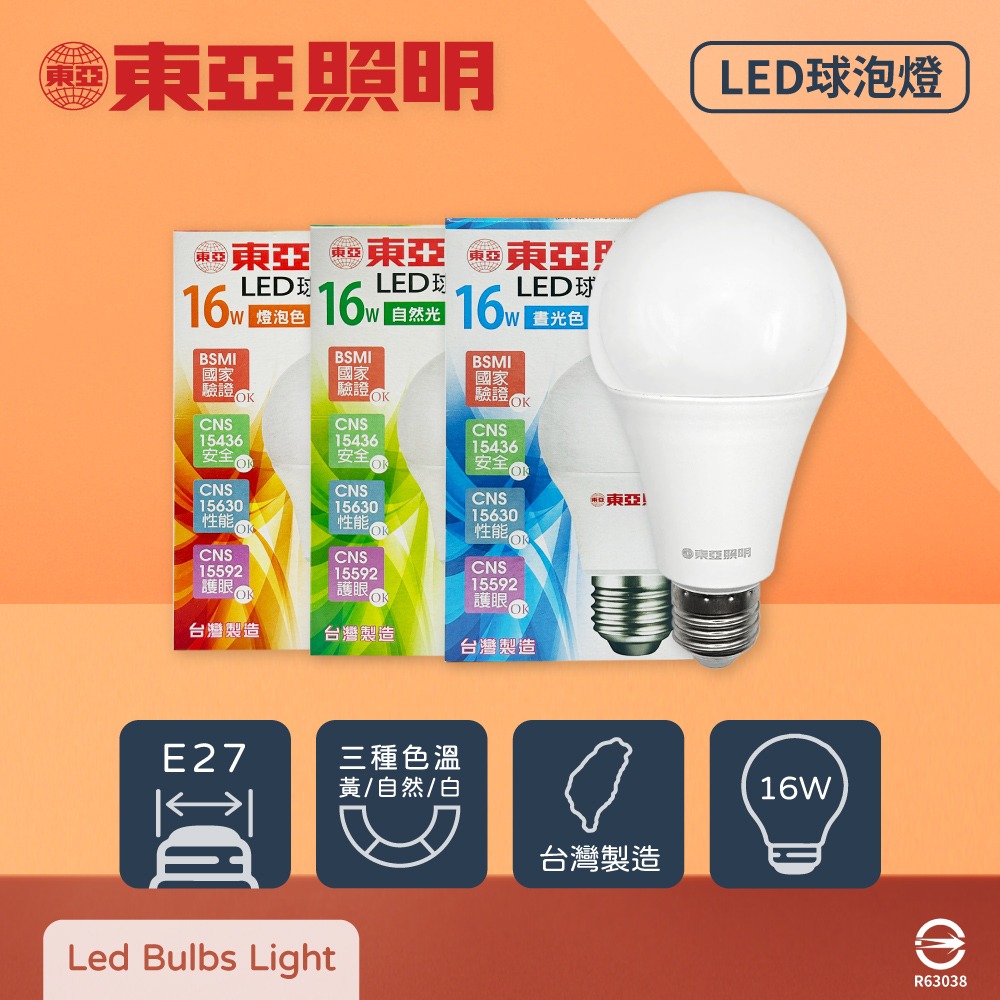 【東亞照明】台灣製造 LED燈泡 13W 全電壓 E27 球泡燈 (白光/自然光/黃光)