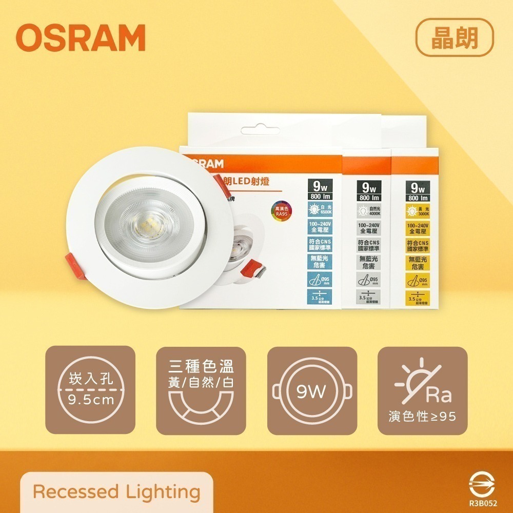 【純粹生活】 歐司朗 OSRAM 晶朗 LED 嵌燈 9W 全電壓 高演色 9.5cm 崁燈 射燈