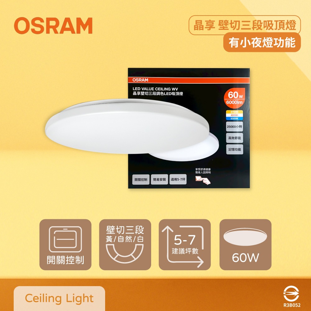 【純粹生活】歐司朗 OSRAM LEDVANCE 晶享 60W 全電壓 壁切三段調色吸頂燈