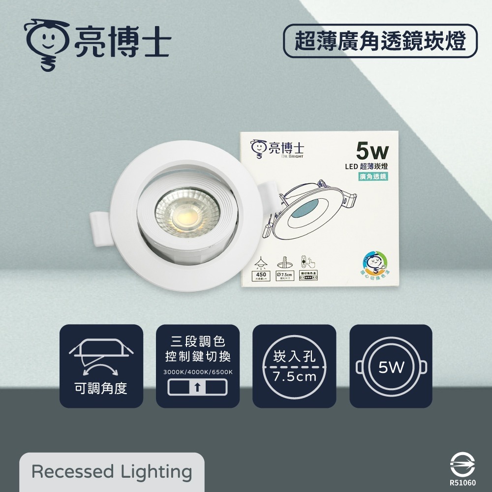 【純粹生活】 DR.BRIGHT 亮博士 LED 5W 白殼 調撥色溫切換 全電壓 超薄廣角透鏡崁燈 7.5cm嵌燈