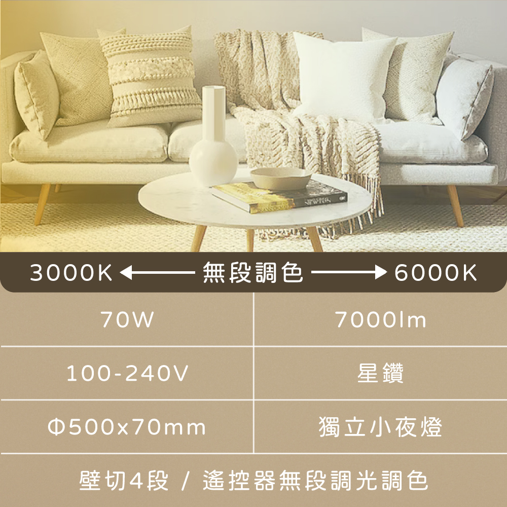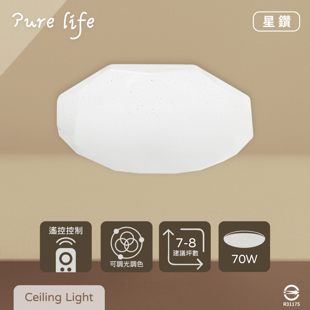 【純粹生活】無極調光調色 70W 星鑽 全電壓 紅外線遙控 LED 超薄吸頂燈