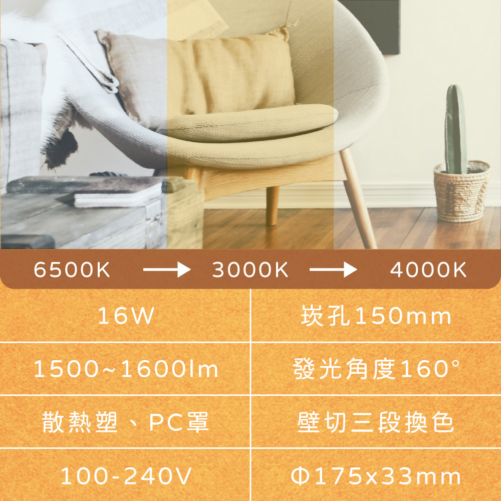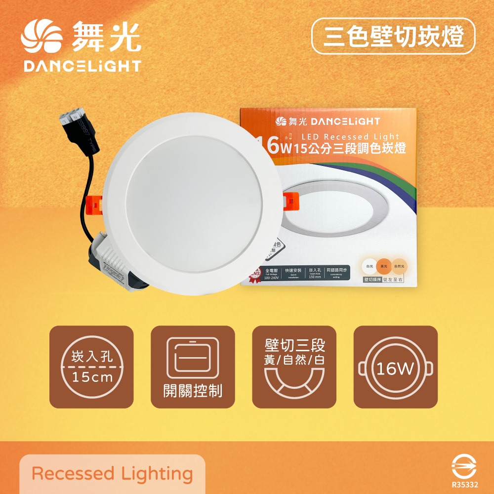 【純粹生活】 舞光 LED 16W 15公分 三色壁切 全電壓 三段壁切調色崁燈 LED嵌燈 15cm崁燈
