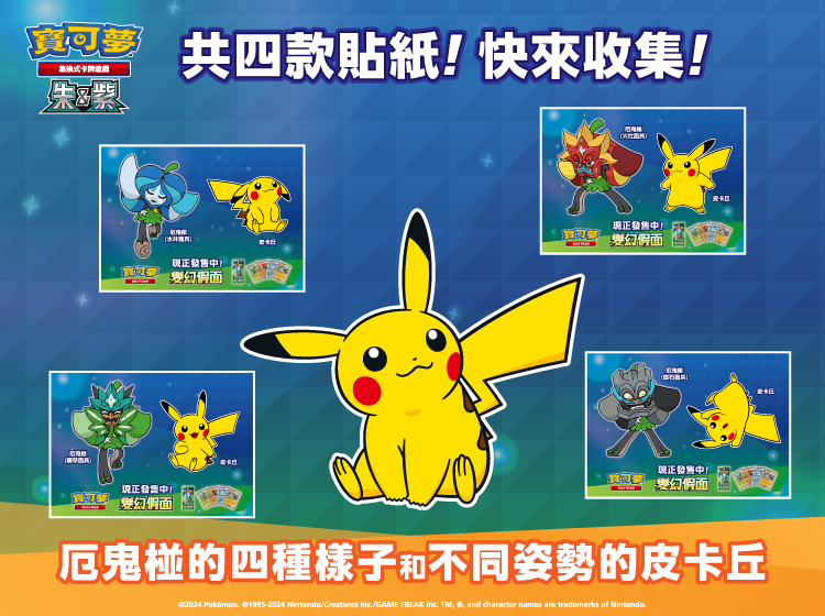 B6大貼紙共有四款,分別是厄鬼椪的四種樣子和皮卡丘的四種姿勢。