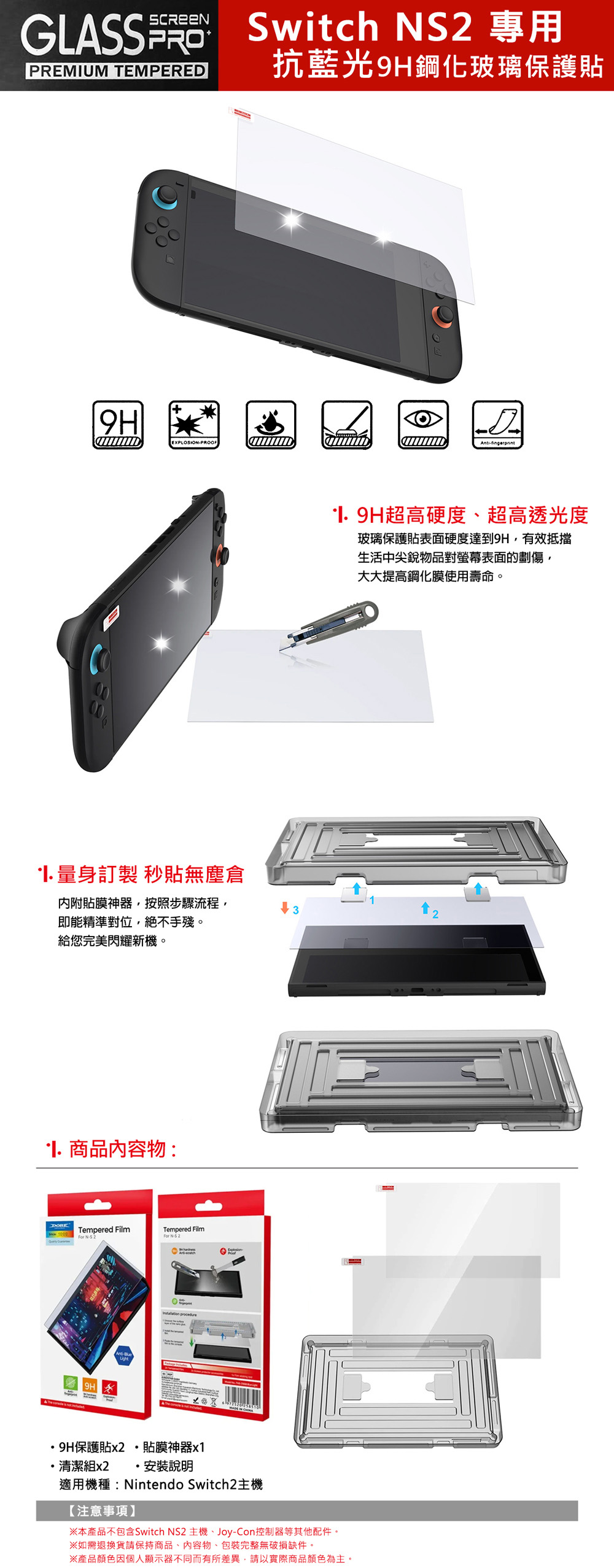 9H保護貼x2 / 貼膜神器x1 / 清潔組x2 / 安裝說明x1
