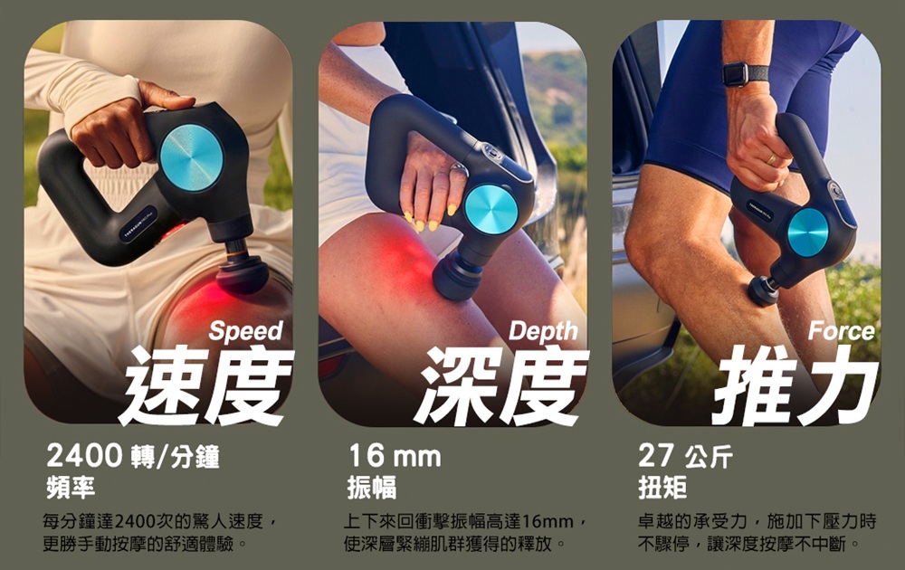 ■ 強勁27kg衝擊力,搭配7款按摩頭適用各肌群