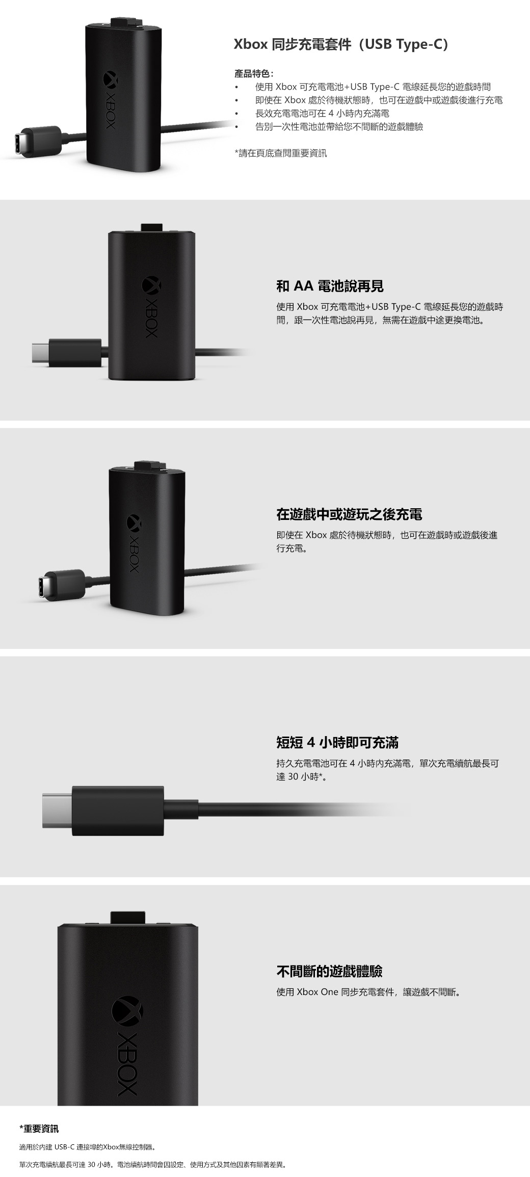 XBOX 原廠同步充電套件 (XBOX充電式電池+USB-C傳輸充電線2.7m)