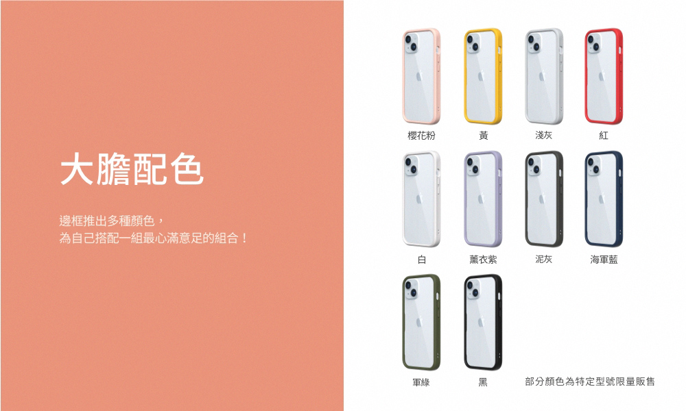 • 邊框殼:手機殼邊框 + 飾條 + 背膜