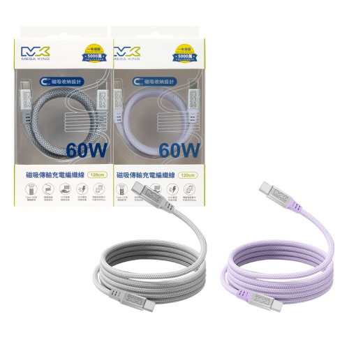 品名: 60W Type-C to Type-C 磁吸編織充電線 20V/3A
