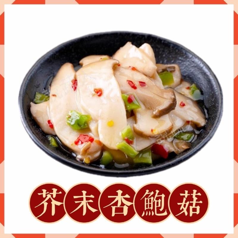 嚴選杏鮑菇質地細膩脆嫩、口感肥厚,具有獨特香味,加上杏鮑菇營養價值高而受大眾熱愛,特選佐以獨特辛香辣爽之芥末風味,創造出柔嫩彈牙,鮮美而膾炙人口、令人再三回味之絕佳菜餚。