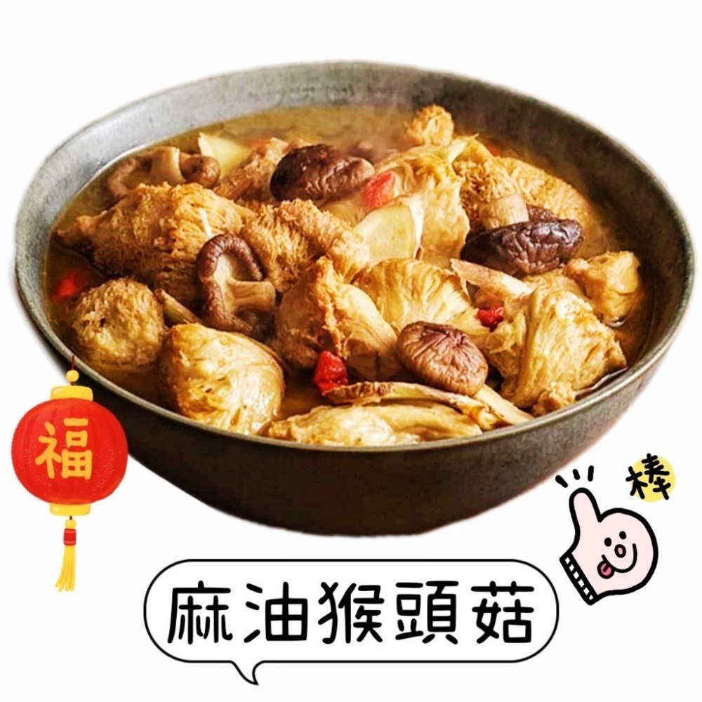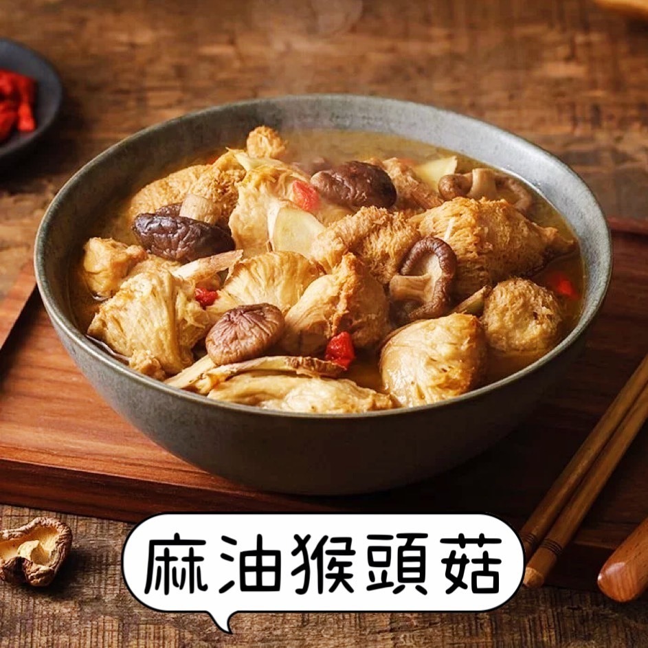 【商品成分】水、猴頭菇、麻油 (芝麻)、薑片、碘鹽、香油 (芝麻)、二砂、醬油膏 (大豆、麩質)、香菇、枸杞、黃耆、當歸、蔘鬚、蛋、修飾澱粉 (羥丙基磷酸二澱粉)、素食調味料 (L-麩酸鈉、DL-胺基丙酸、5’-次黃嘌呤核苷磷酸二鈉+5’-鳥嘌呤核苷磷酸二鈉、琥珀酸二鈉)、素食香料。