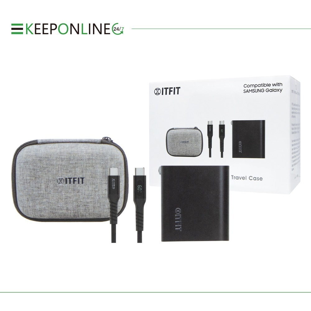 商品內容物:30W旅行電源供應器 *1 、USB-C to USB-C數顯快充線 *1、ITFIT旅行收納包 *1、使用說明書