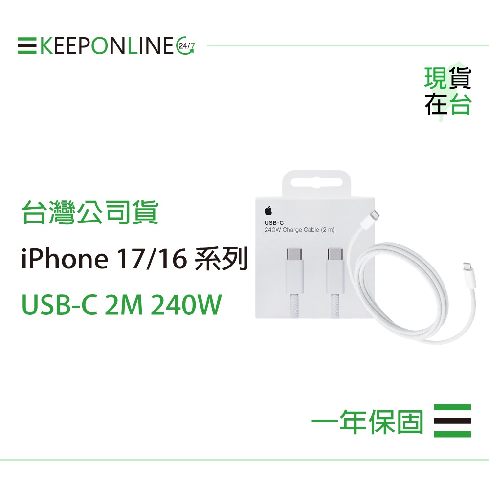 商品品名:iPhone 17/16 系列 原廠240W USB-C 充電連接線-2M / A2794【保固一年】