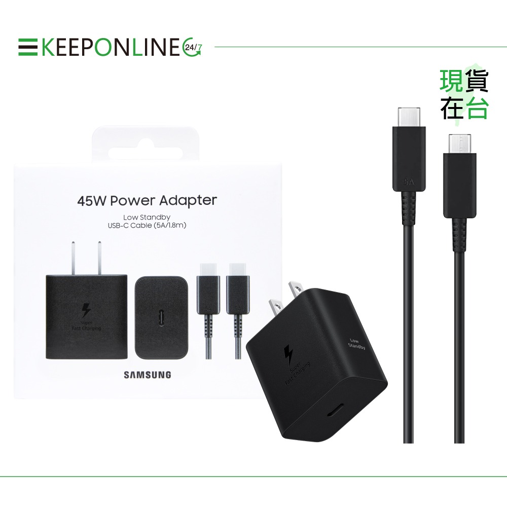 商品盒內配件:45W 快充旅充頭、Type-C to Type-C 5A 傳輸線(1.8m)、使用手冊