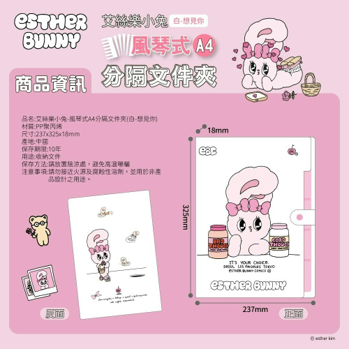 【艾絲樂小兔】風琴式A4分格文件夾(白-想見你)