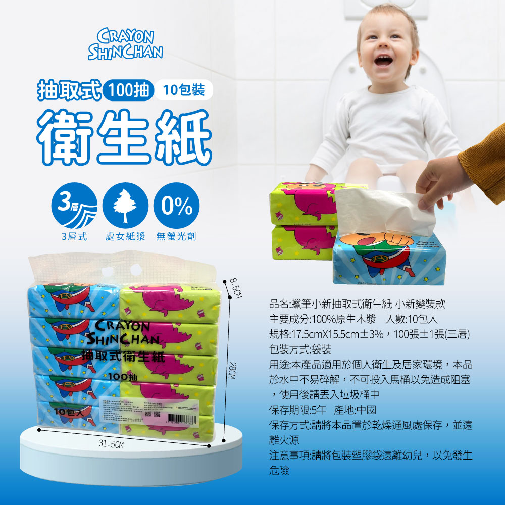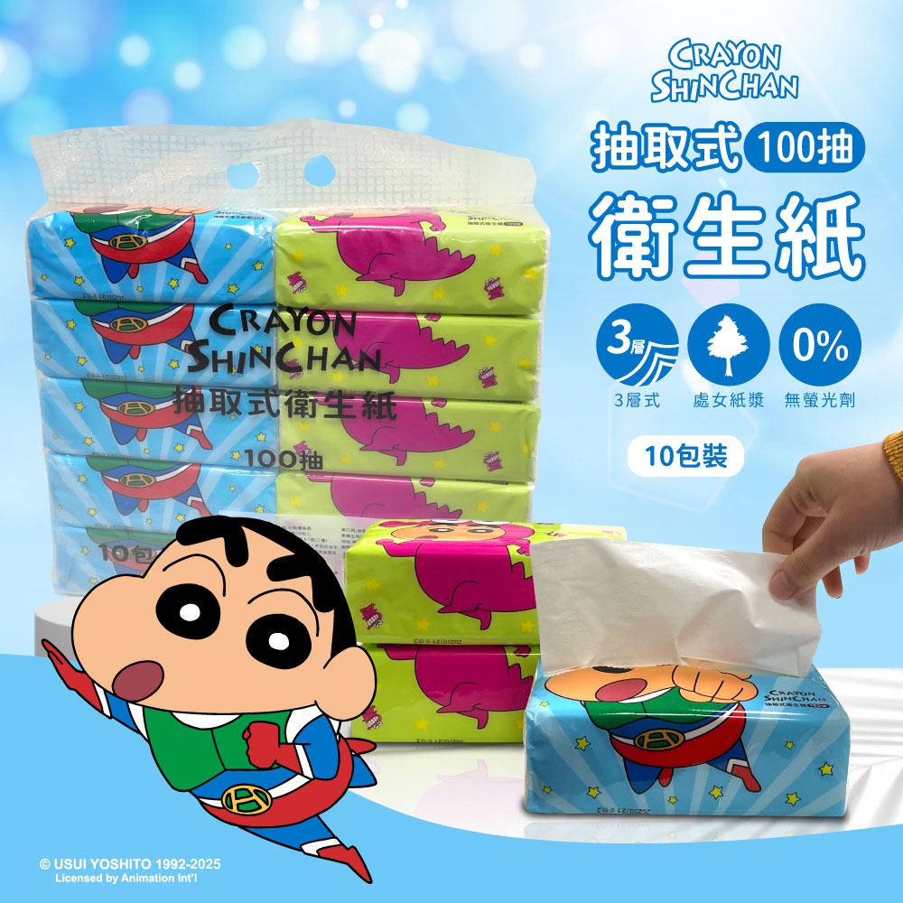 【蠟筆小新】抽取式衛生紙100抽10包(2025小新款)-單箱