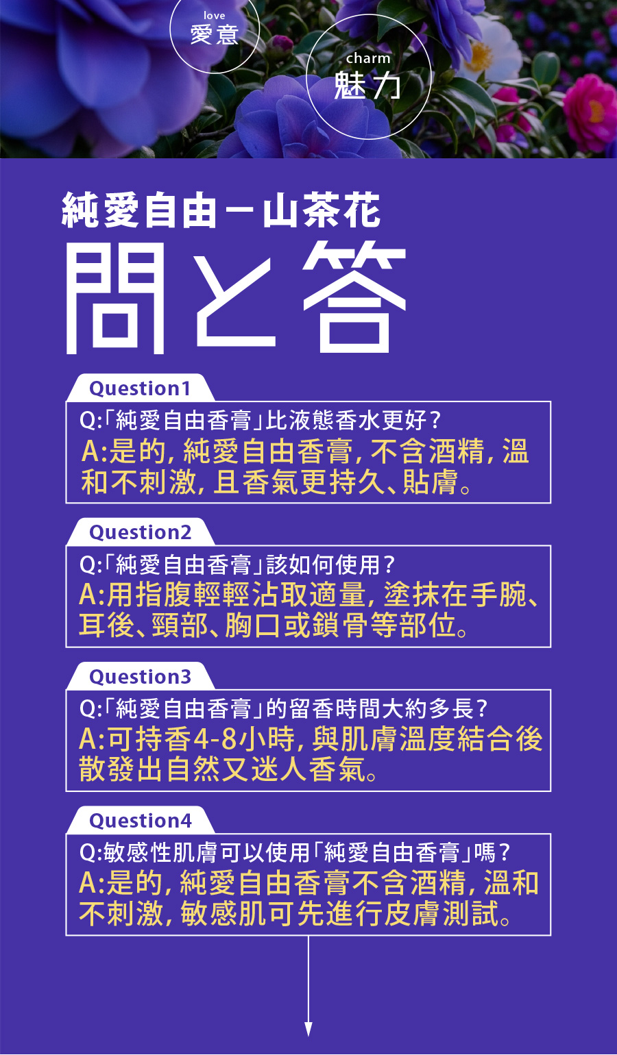 【商品資訊】 【使用方法】 注意事項:皮膚敏感者,使用前請先做局部皮膚測試。/如有任何不適或請停止使用。/皮膚有傷口、紅腫、異常時,請避免使用。/高溫環境時,固體香水表面會產生小水珠,屬正常現象,請安心使用。