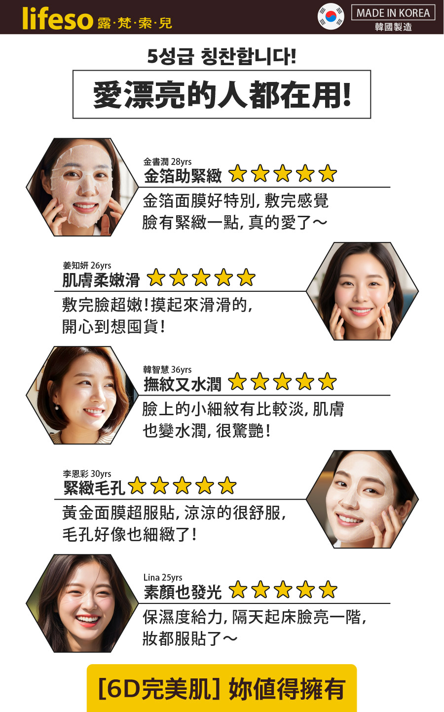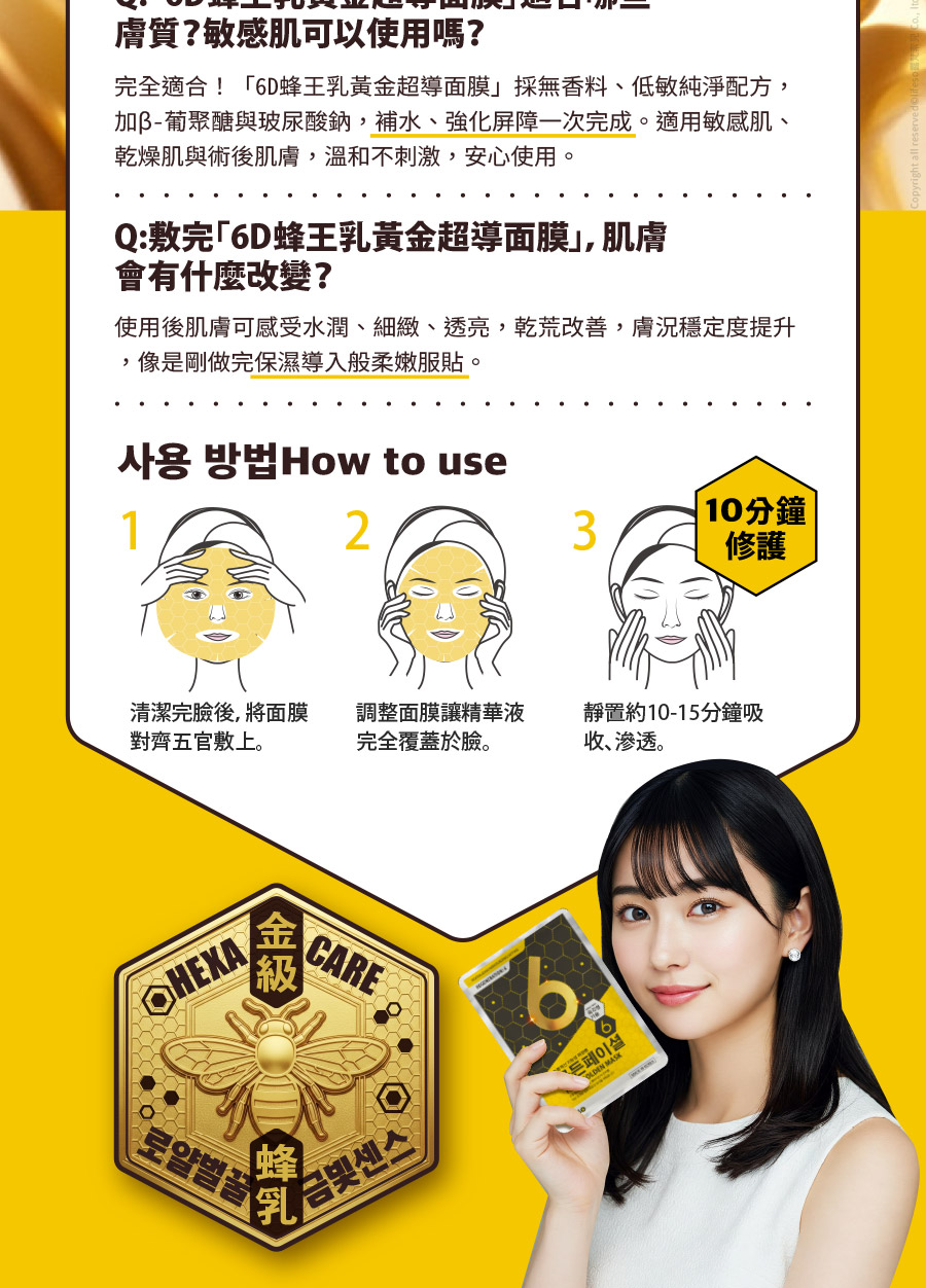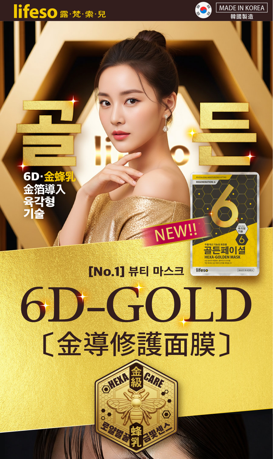品名:lifeso露梵索兒 | 6D蜂王乳黃金超導面膜/內容量:25ml/片。