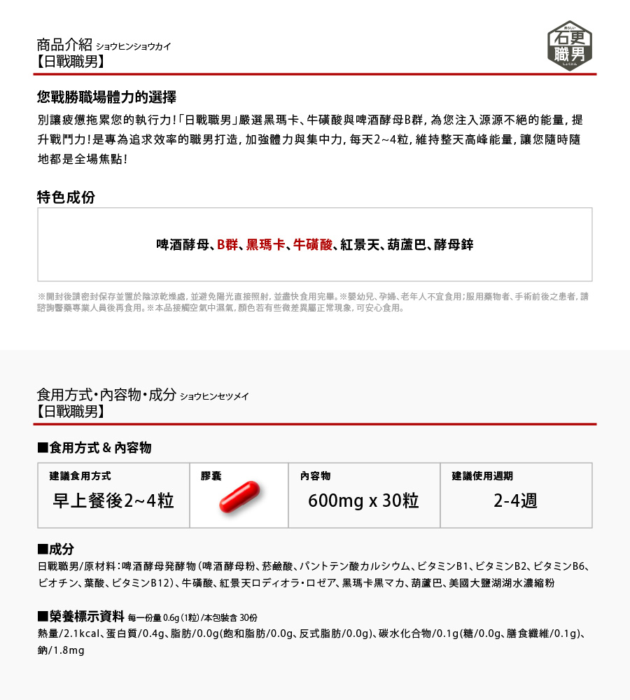 品名:石更職男 | 日戰職男/內容量:30粒/入。