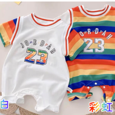 有80/90CM 嬰幼童短袖爬服 包屁衣 寶寶爬服 百元童裝 彩虹 女寶寶 男女童
