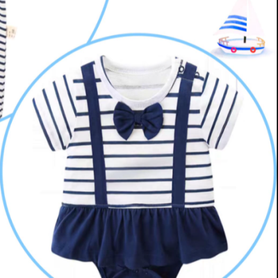 台灣現貨 有80/90CM 嬰幼童短袖爬服 包屁衣 寶寶爬服 百元童裝 裙哈 女寶寶 學院風