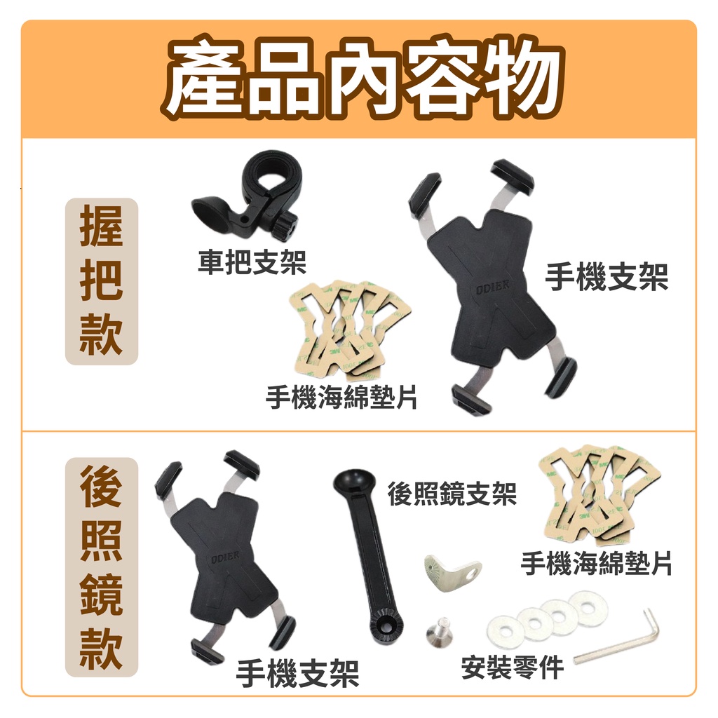 *偶爾會有客戶買錯 「握把款」手機架,結果無法裝在「機車」上,如果您不知道您的「機車」使用的款式,建議可以直接購買「後照鏡款」手機架,95%以上的「機車」都可以安裝喔!!