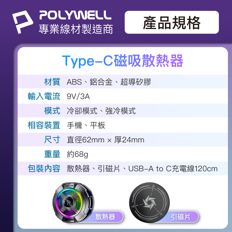 🔥 POLYWELL Type-C 磁吸式手機散熱器 SL-20 🔥