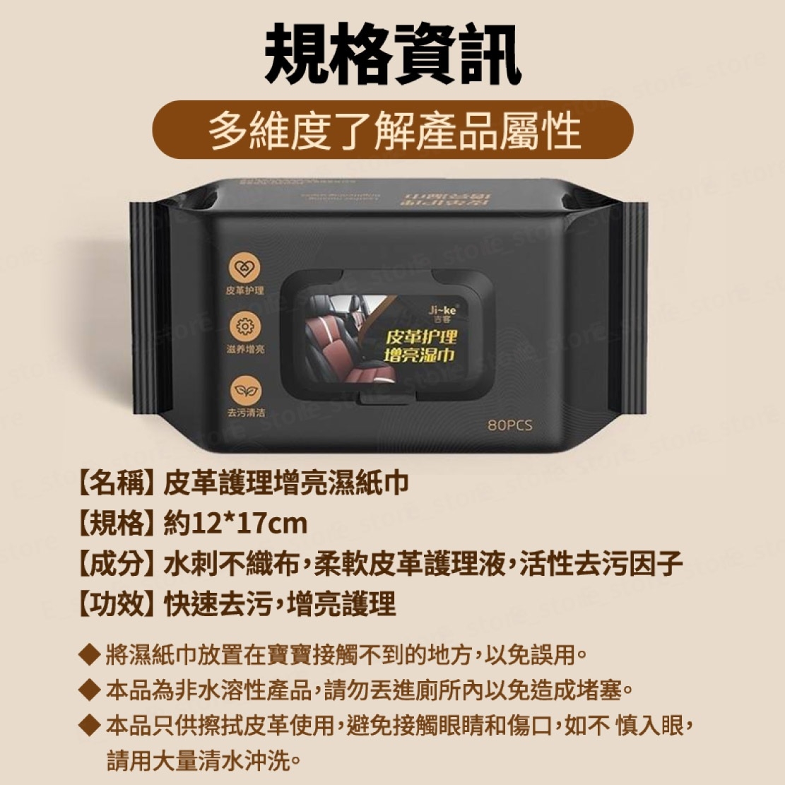 【商品成分】:水刺不織布、柔軟皮革護理液、活性去污因子