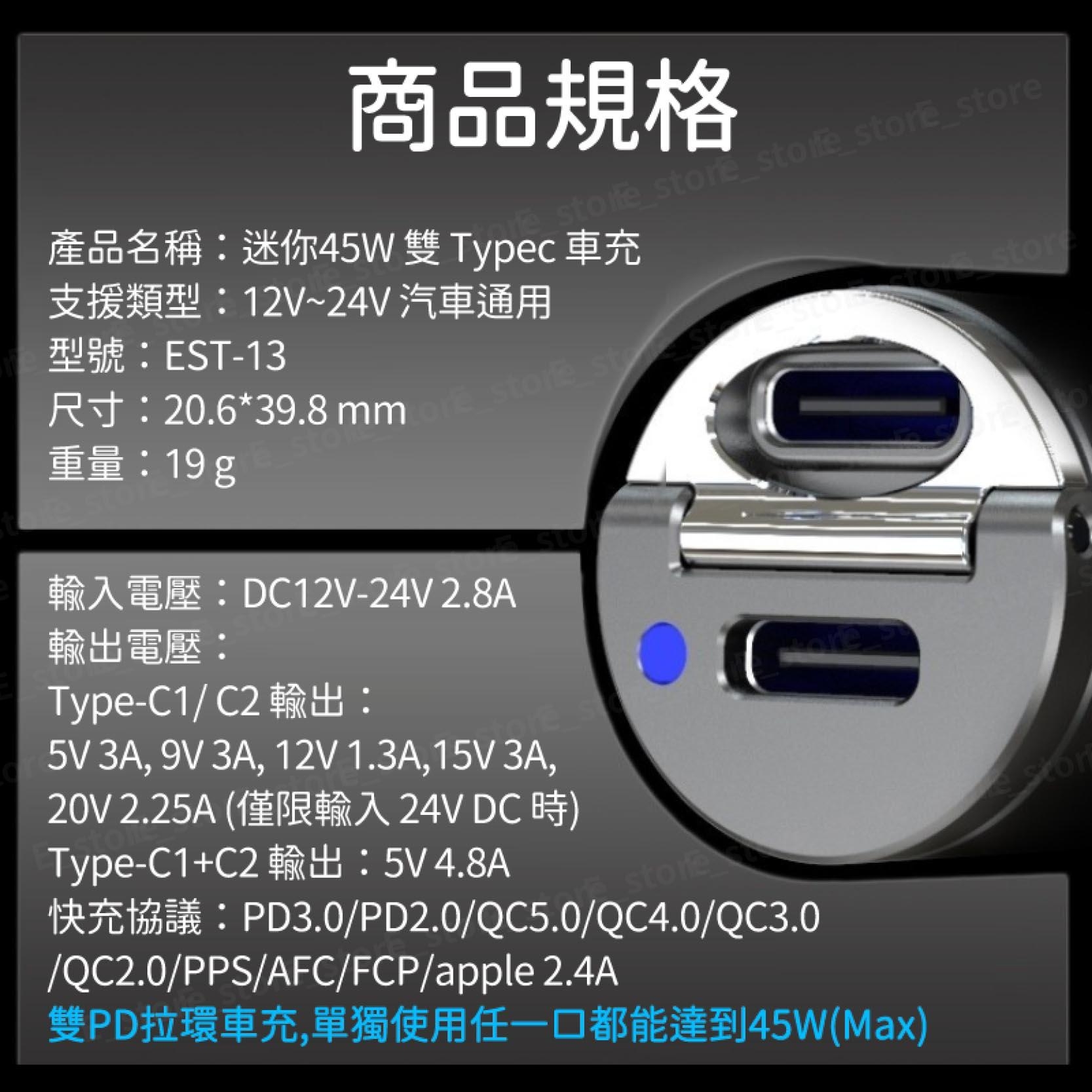 【產品名稱】:迷你45W車用充電器(雙Typec)