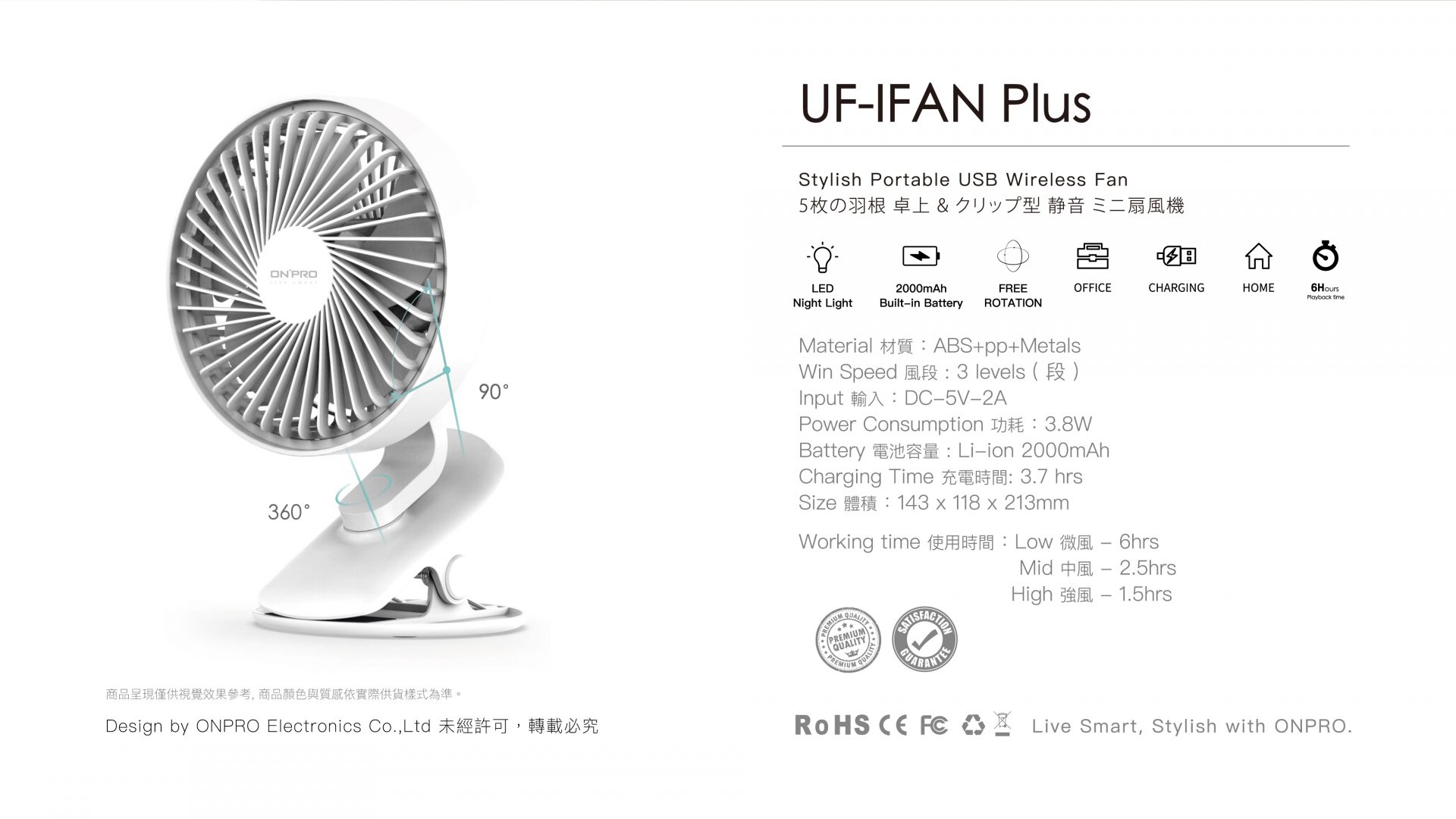 ONPRO UF-IFAN Plus 無線小夜燈夾扇 淨雅白