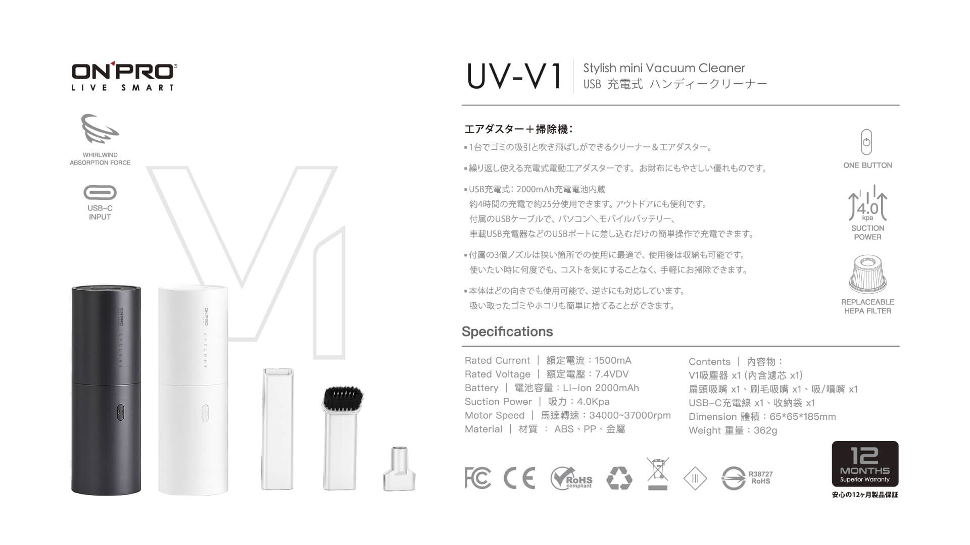 ONPRO UV-V1 迷你無線吹吸兩用手持吸塵器【吸力升級版】