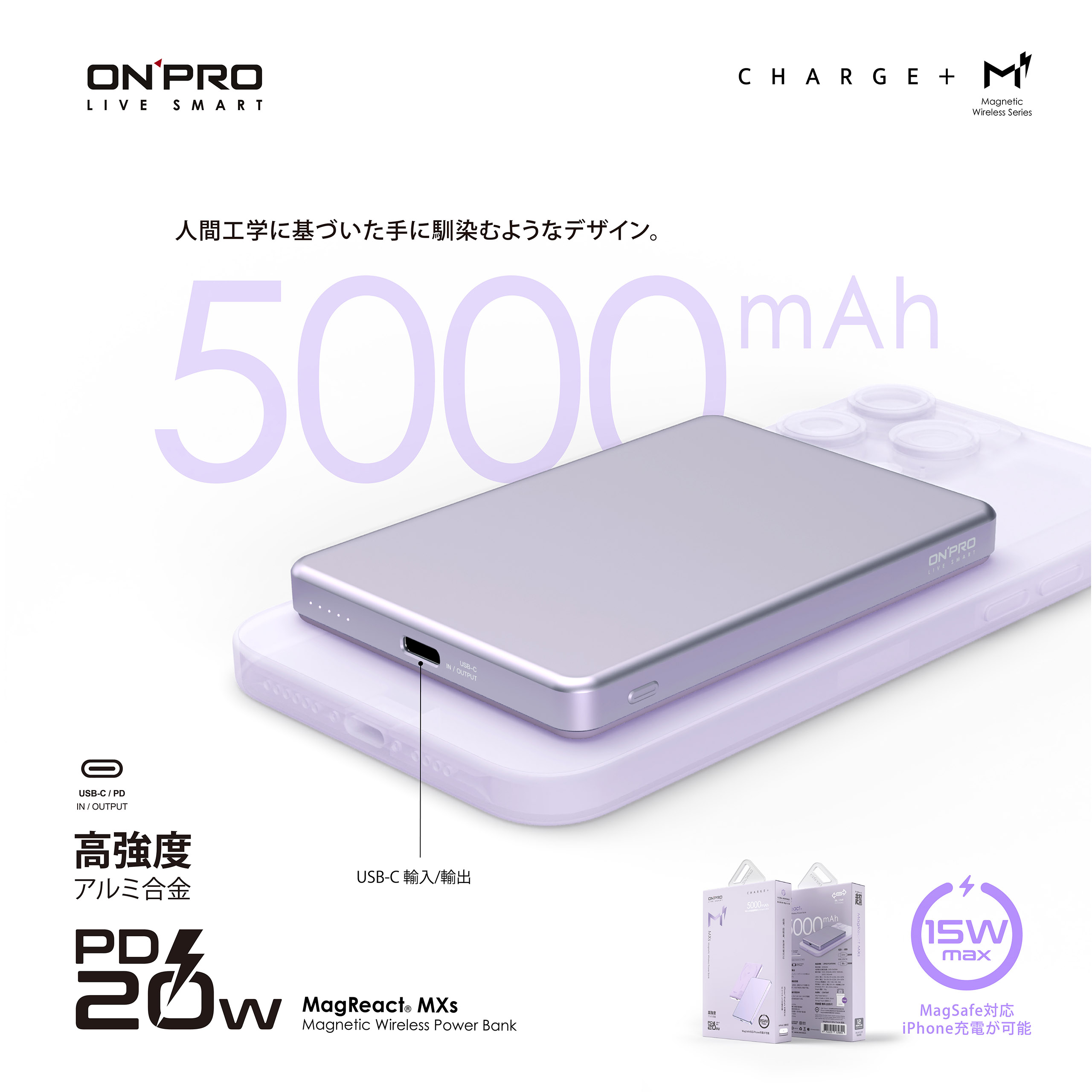ONPRO MagReact MagReact MXs 5000mAh 薄型磁吸無線急速行動電源 (Magsafe磁吸行動電源)