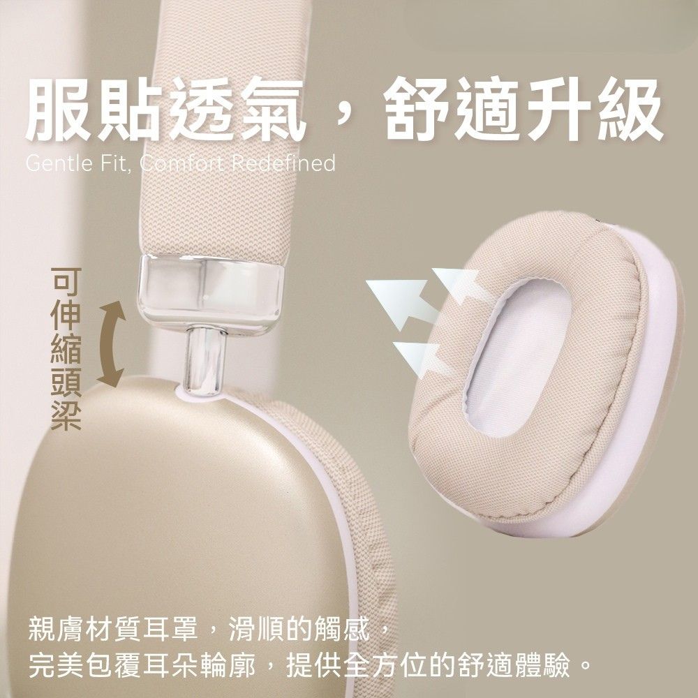 170g 極輕量設計、可伸縮頭梁與靈活可旋轉軸,結合親膚蛋白皮耳罩,舒適感拉滿。