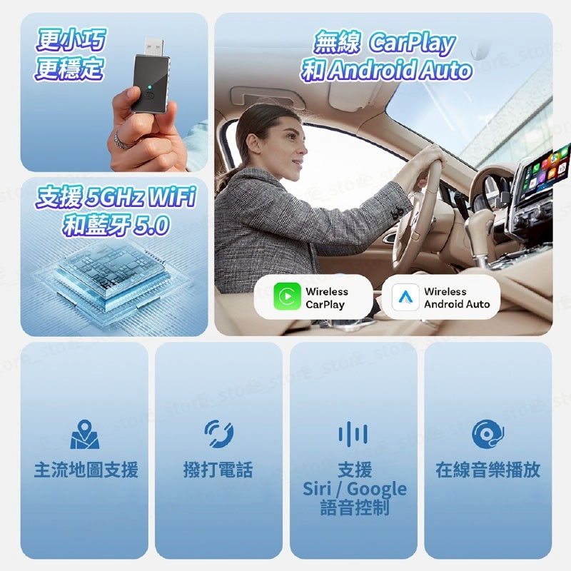 #無線CarPlay #AndroidAuto轉接器 #車機升級 #車用配件 #智慧駕駛 #Siri控制 #Google助理 #5GHzWiFi #藍牙5.0 #OTA升級