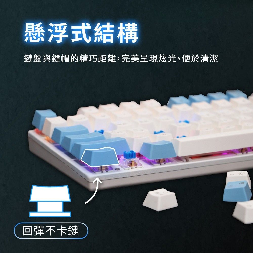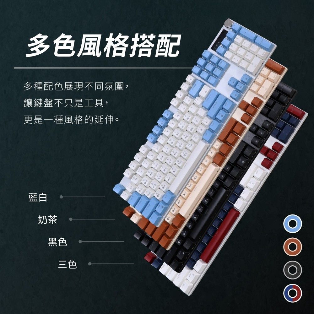 鍵盤顏色:深淵夜影(黑)、雲海蒼穹(藍白)、奶霧雙月(奶茶)、剛彈戰刃(藍紅)