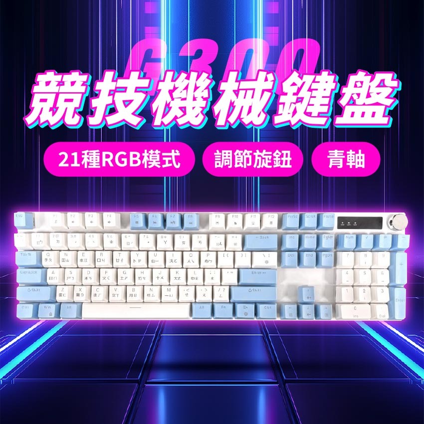 G300 是一款專為遊戲玩家與鍵盤手感控打造的平價高規鍵盤,百元價位就能擁有「旋鈕控制」+「RGB燈效」+「全鍵無衝」+「Hi-Fi青軸手感」!